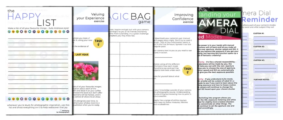 This book includes a host of extra activities and exercise sheets to help improve your wellbeing. Having easy-to-follow tasks makes developing a positive mindset around photography really fun and practical.